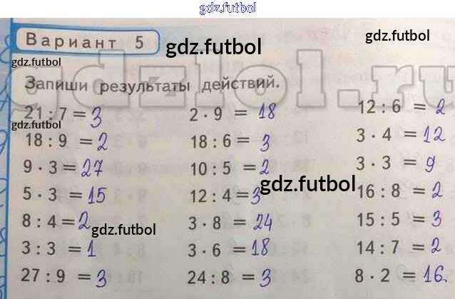 Готовые домашние задания по Математике за 2 класс Рудницкая Контрольные работы УМК 2017 ФГОС - Разные случаи табличного умножения и деления Вар-5
