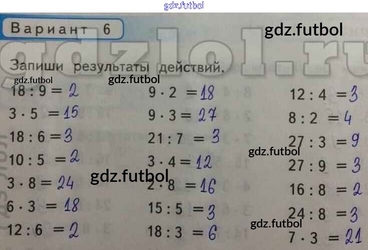 Готовые домашние задания по Математике за 2 класс Рудницкая Контрольные работы УМК 2017 ФГОС - Разные случаи табличного умножения и деления Вар-6