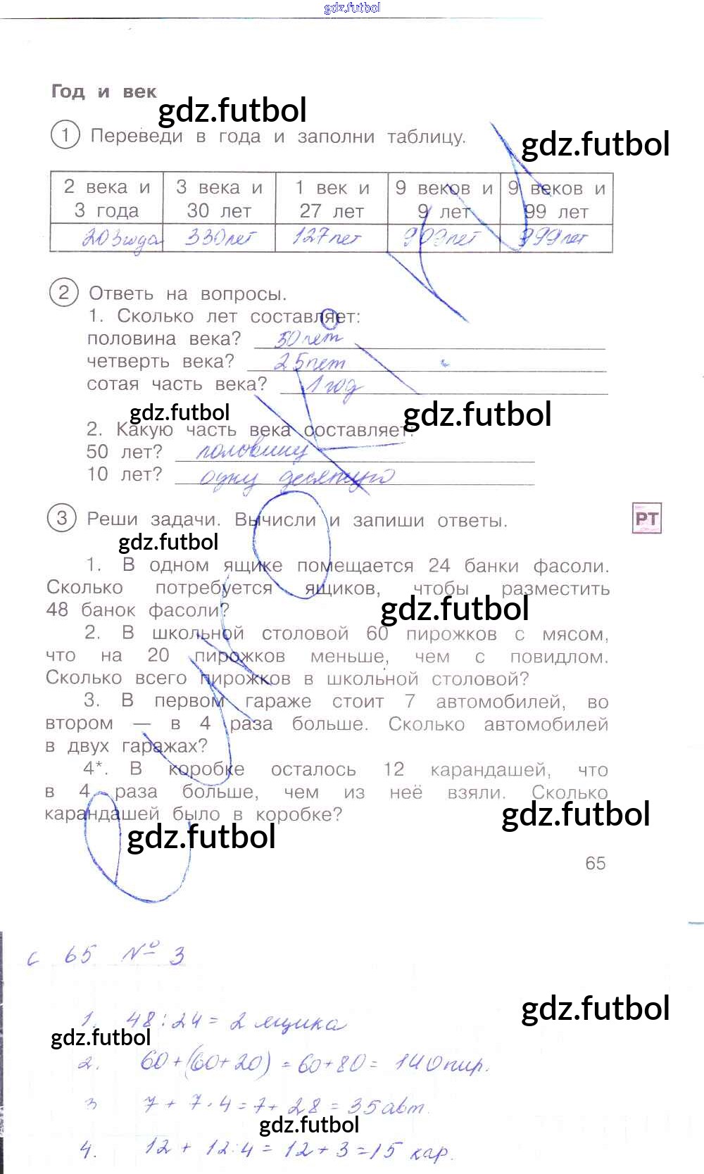 Готовые домашние задания по Математике за 2 класс Захарова Тетрадь для самостоятельной работы Перспективная начальная школа 2016 ФГОС - Часть 1. Страницы 65