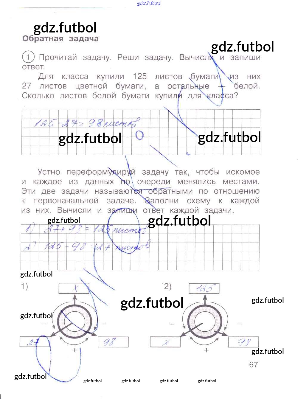 Готовые домашние задания по Математике за 2 класс Захарова Тетрадь для самостоятельной работы Перспективная начальная школа 2016 ФГОС - Часть 1. Страницы 67