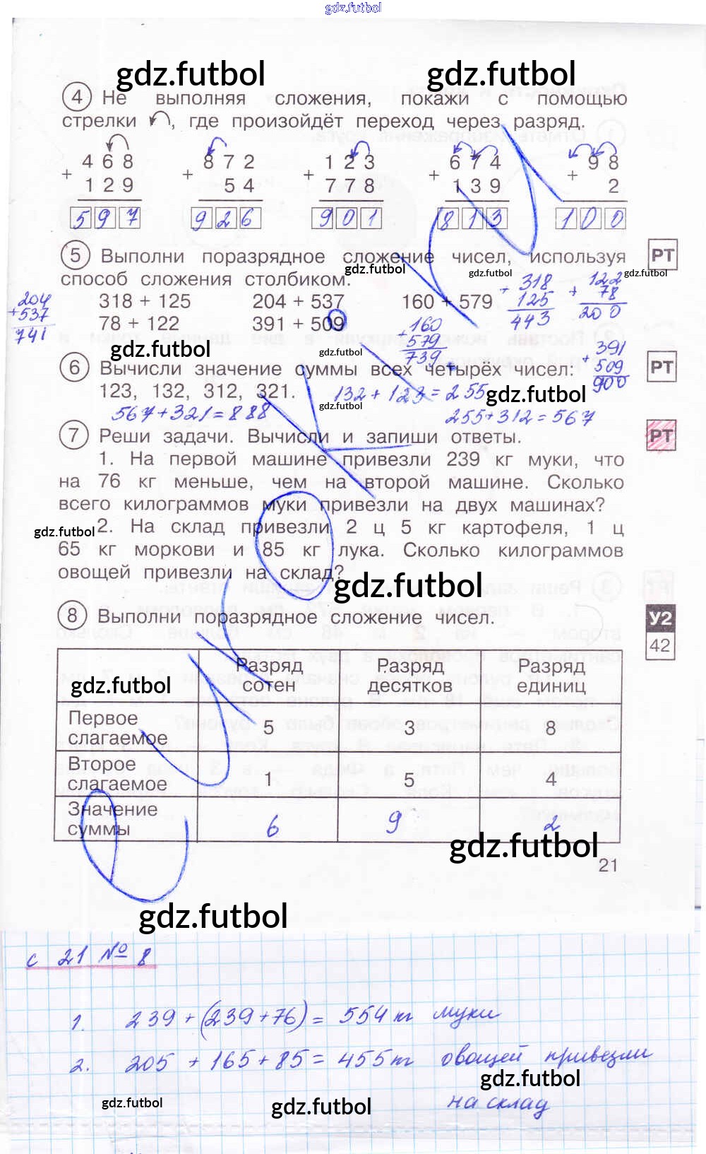 Готовые домашние задания по Математике за 2 класс Захарова Тетрадь для самостоятельной работы Перспективная начальная школа 2016 ФГОС - Часть 2. Страницы 21