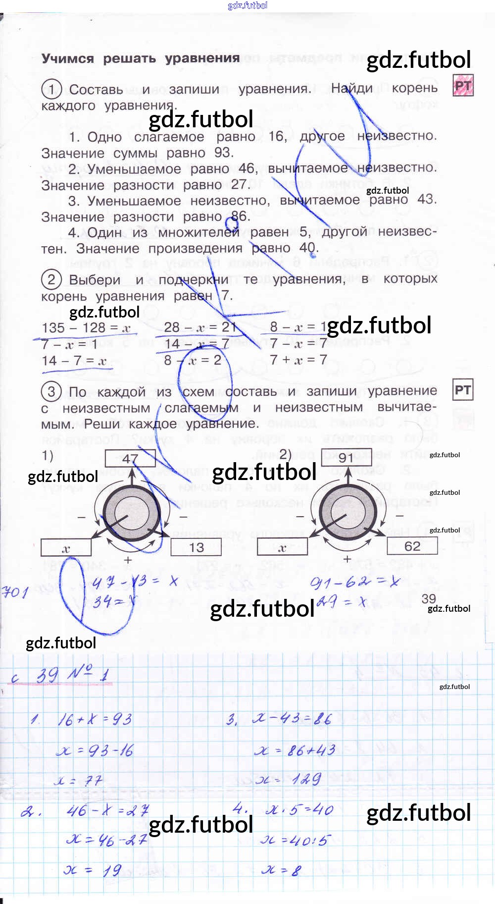 Готовые домашние задания по Математике за 2 класс Захарова Тетрадь для самостоятельной работы Перспективная начальная школа 2016 ФГОС - Часть 2. Страницы 39