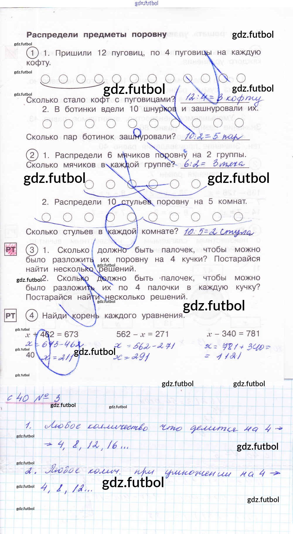 Готовые домашние задания по Математике за 2 класс Захарова Тетрадь для самостоятельной работы Перспективная начальная школа 2016 ФГОС - Часть 2. Страницы 40
