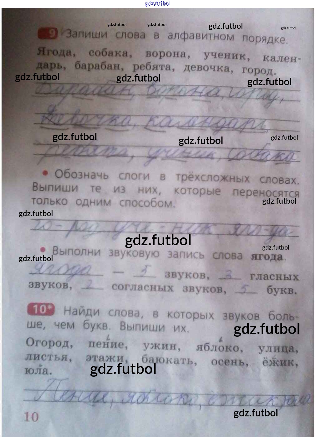 Готовые домашние задания по Русскому языку за 2 класс Песняева Рабочая тетрадь 2020 ФГОС - Часть 1. Страницы тетради 10