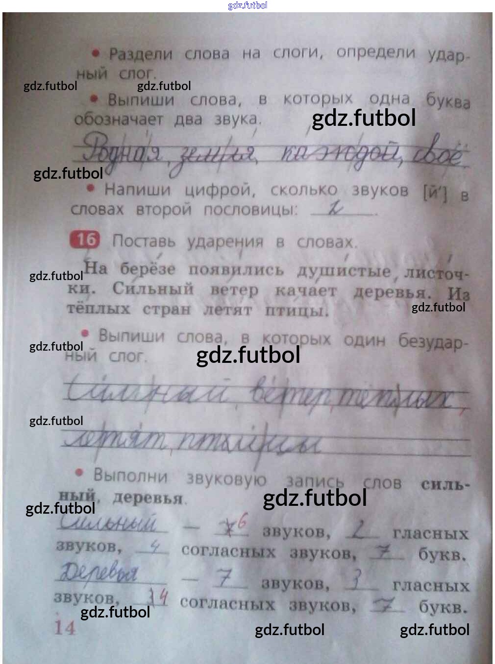 Готовые домашние задания по Русскому языку за 2 класс Песняева Рабочая тетрадь 2020 ФГОС - Часть 1. Страницы тетради 14