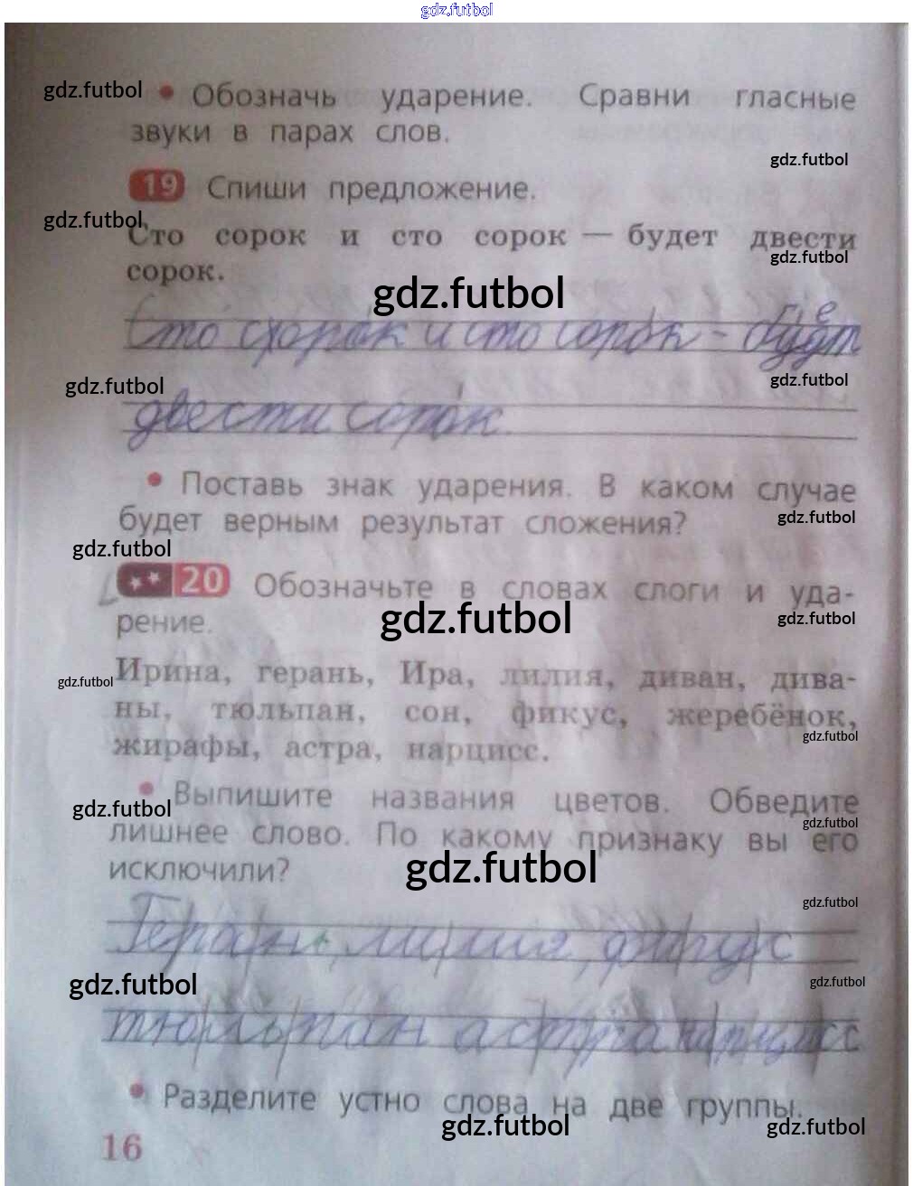Готовые домашние задания по Русскому языку за 2 класс Песняева Рабочая тетрадь 2020 ФГОС - Часть 1. Страницы тетради 16