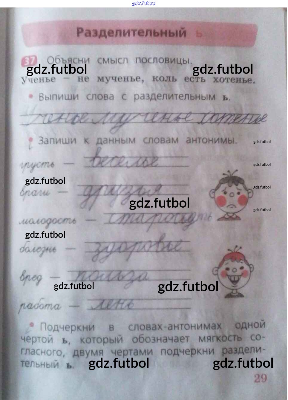 Готовые домашние задания по Русскому языку за 2 класс Песняева Рабочая тетрадь 2020 ФГОС - Часть 1. Страницы тетради 29