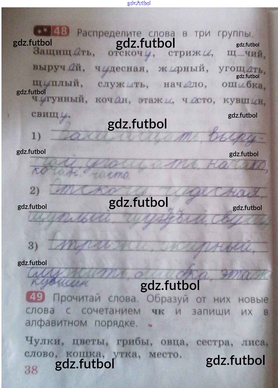 Готовые домашние задания по Русскому языку за 2 класс Песняева Рабочая тетрадь 2020 ФГОС - Часть 1. Страницы тетради 38