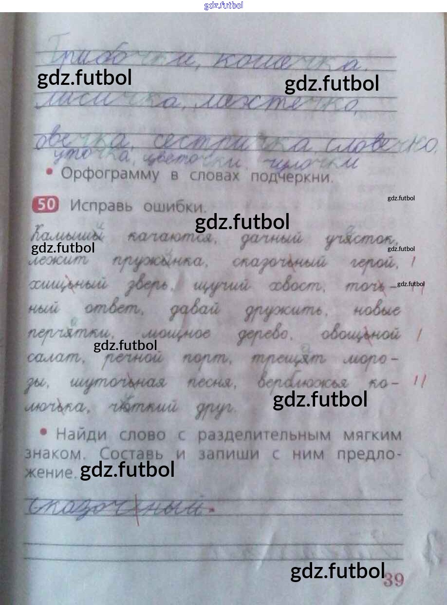 Готовые домашние задания по Русскому языку за 2 класс Песняева Рабочая тетрадь 2020 ФГОС - Часть 1. Страницы тетради 39