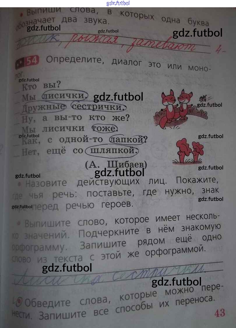 Готовые домашние задания по Русскому языку за 2 класс Песняева Рабочая тетрадь 2020 ФГОС - Часть 1. Страницы тетради 43
