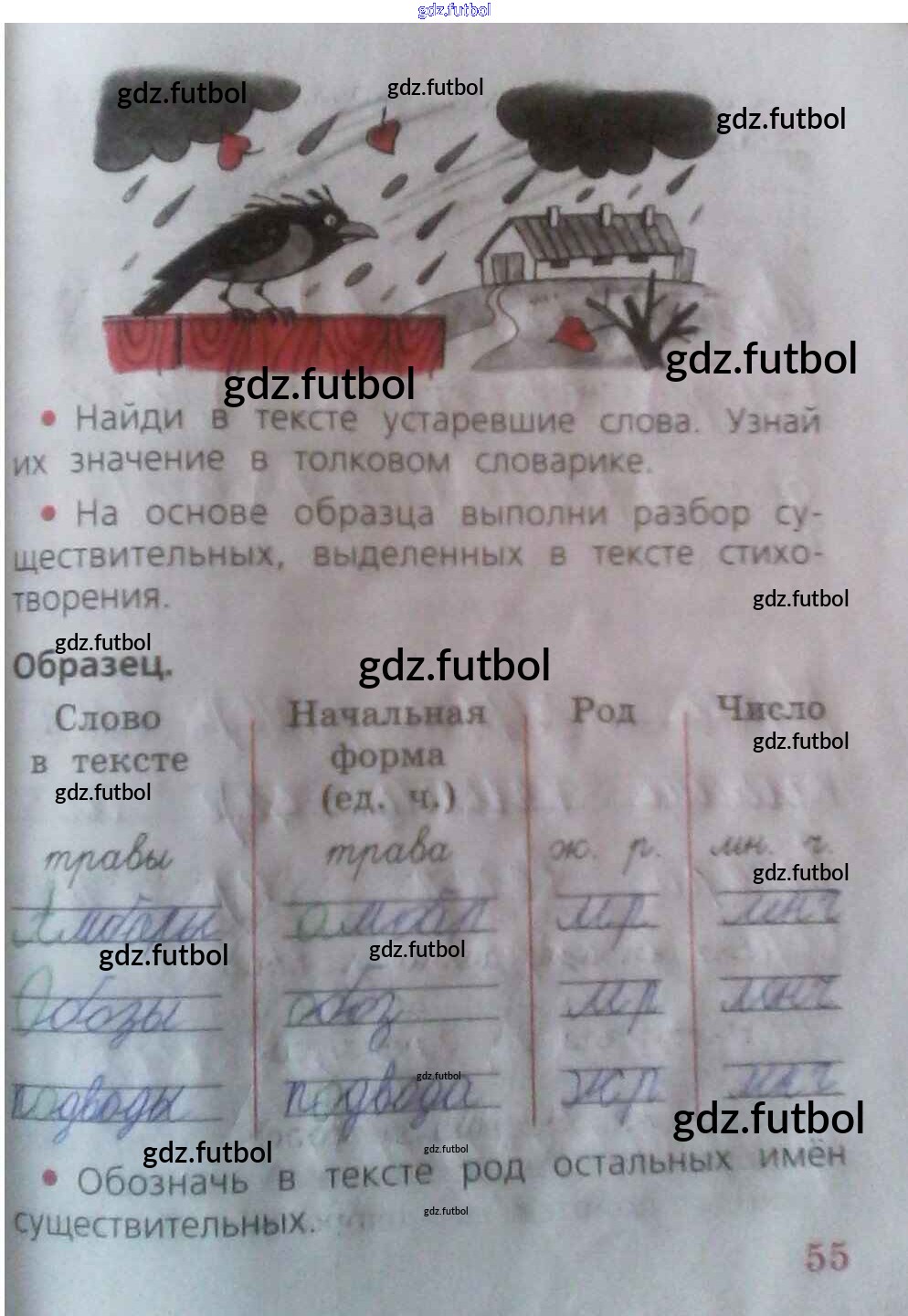 Готовые домашние задания по Русскому языку за 2 класс Песняева Рабочая тетрадь 2020 ФГОС - Часть 1. Страницы тетради 55