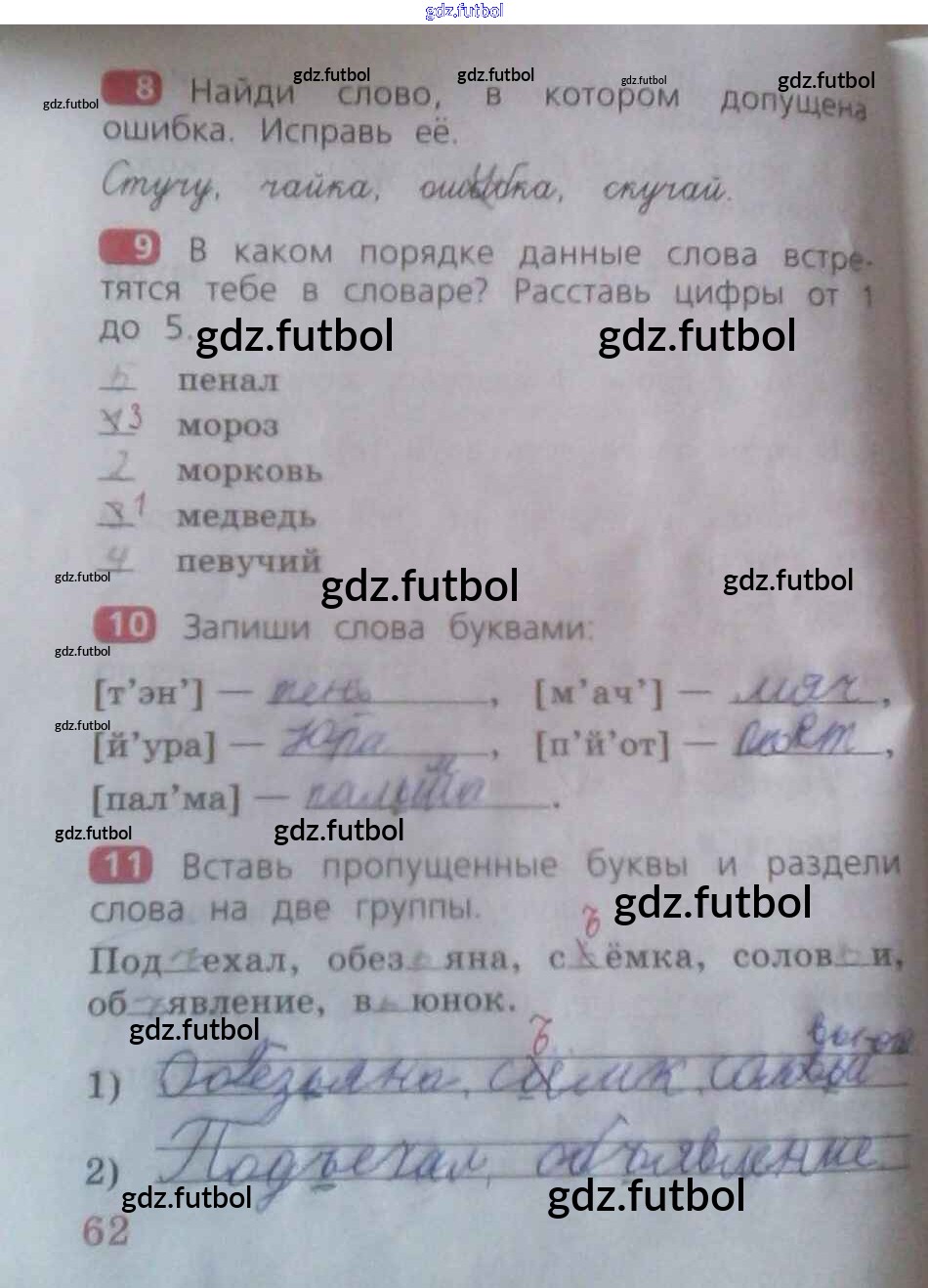 Готовые домашние задания по Русскому языку за 2 класс Песняева Рабочая тетрадь 2020 ФГОС - Часть 1. Страницы тетради 62