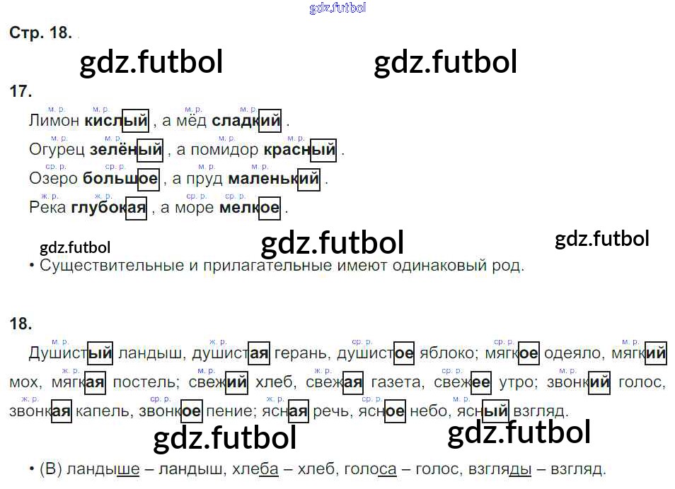 Готовые домашние задания по Русскому языку за 2 класс Песняева Рабочая тетрадь 2020 ФГОС - Часть 2. Страницы тетради 18