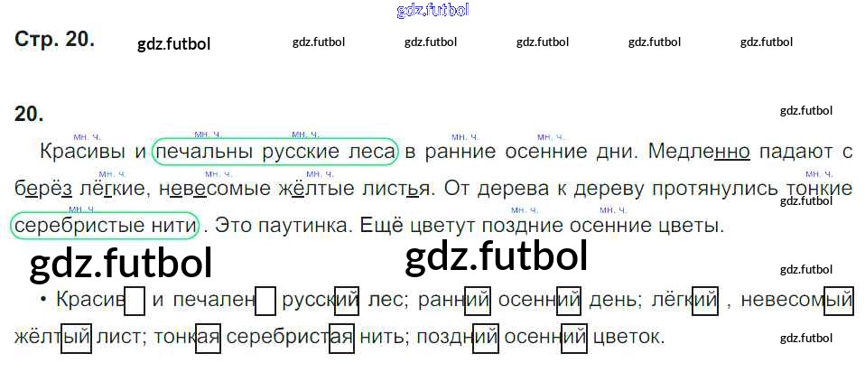 Готовые домашние задания по Русскому языку за 2 класс Песняева Рабочая тетрадь 2020 ФГОС - Часть 2. Страницы тетради 20
