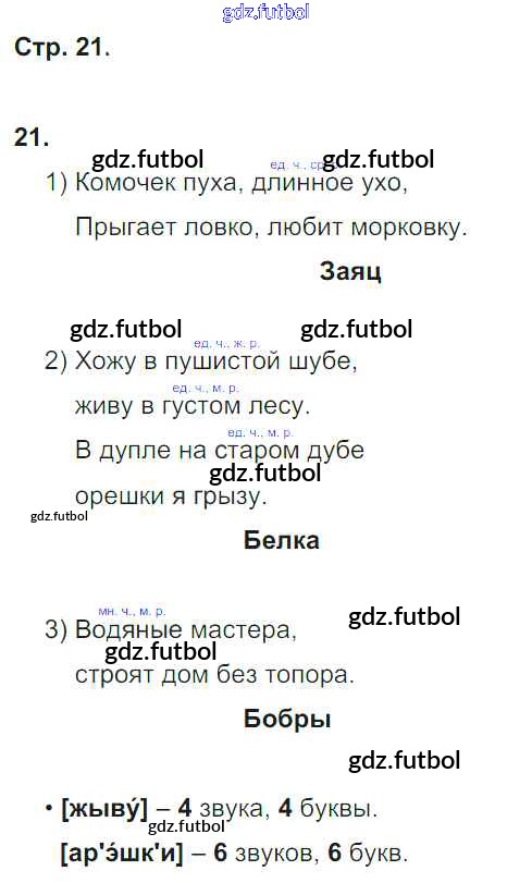 Готовые домашние задания по Русскому языку за 2 класс Песняева Рабочая тетрадь 2020 ФГОС - Часть 2. Страницы тетради 21