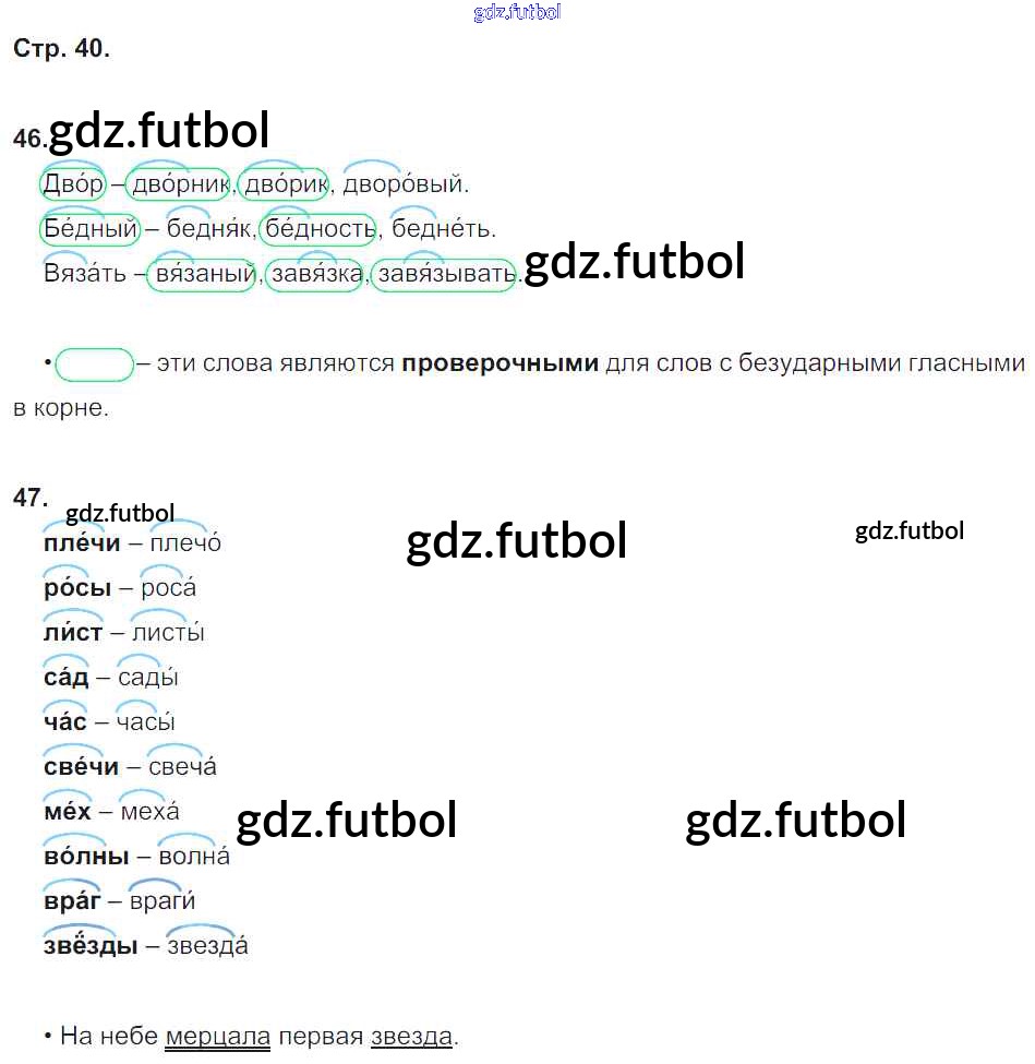 Готовые домашние задания по Русскому языку за 2 класс Песняева Рабочая тетрадь 2020 ФГОС - Часть 2. Страницы тетради 40
