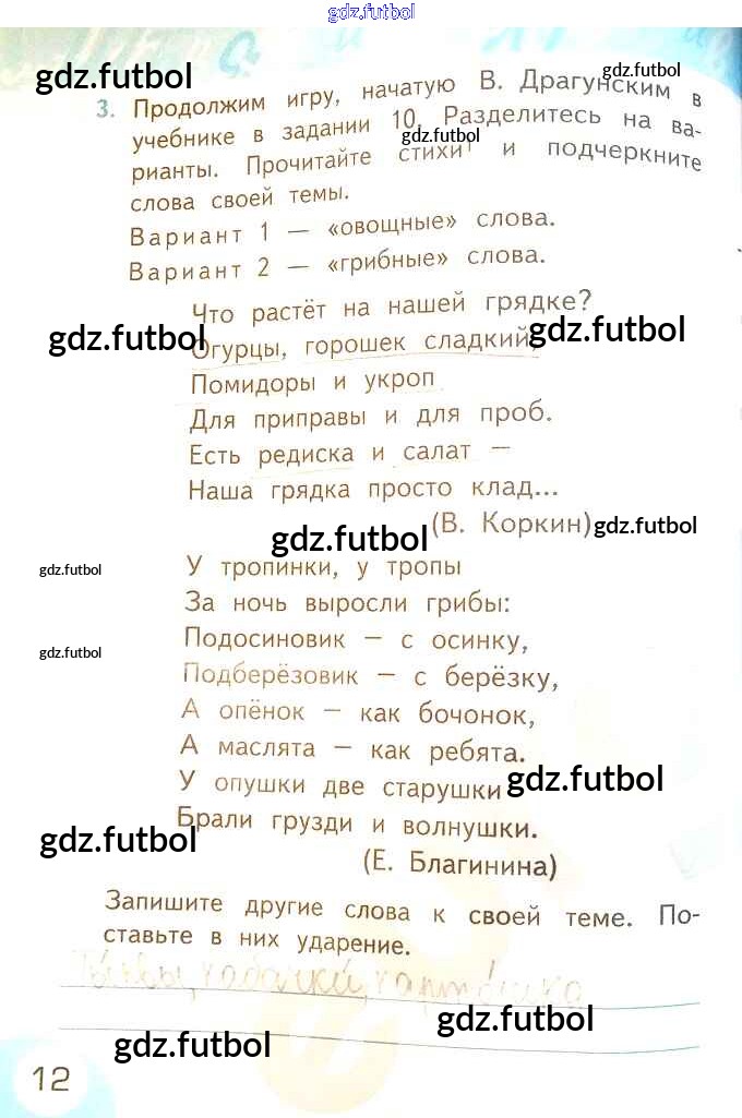 Готовые домашние задания по Русскому языку за 2 класс Тихомирова Рабочая тетрадь УМК 2019 ФГОС - Часть 1. Страницы 12