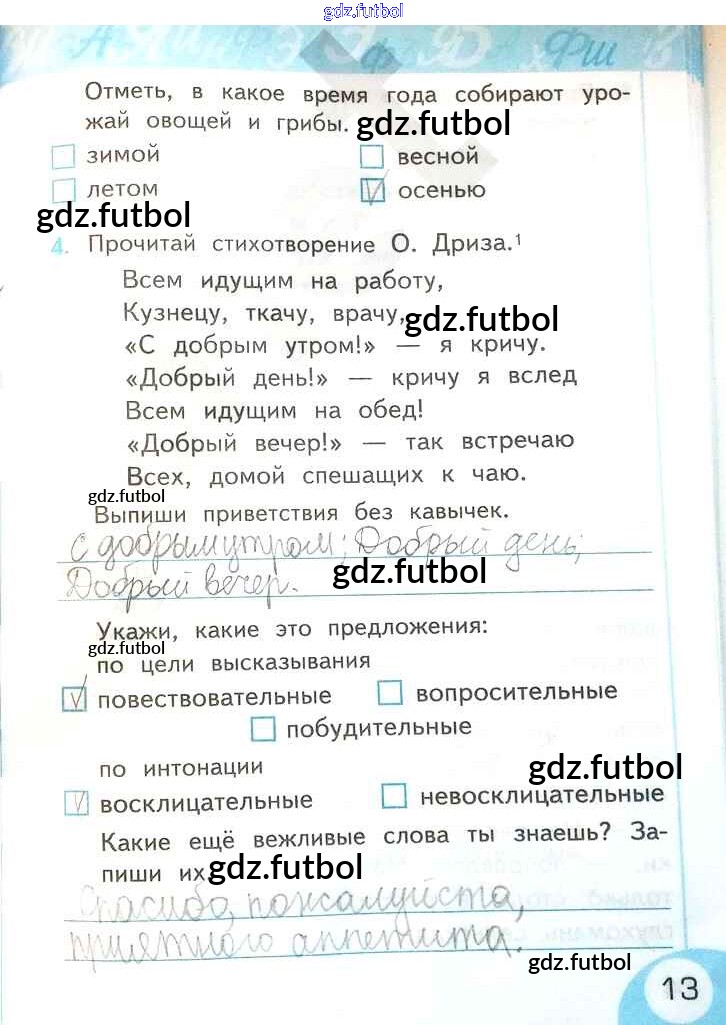 Готовые домашние задания по Русскому языку за 2 класс Тихомирова Рабочая тетрадь УМК 2019 ФГОС - Часть 1. Страницы 13