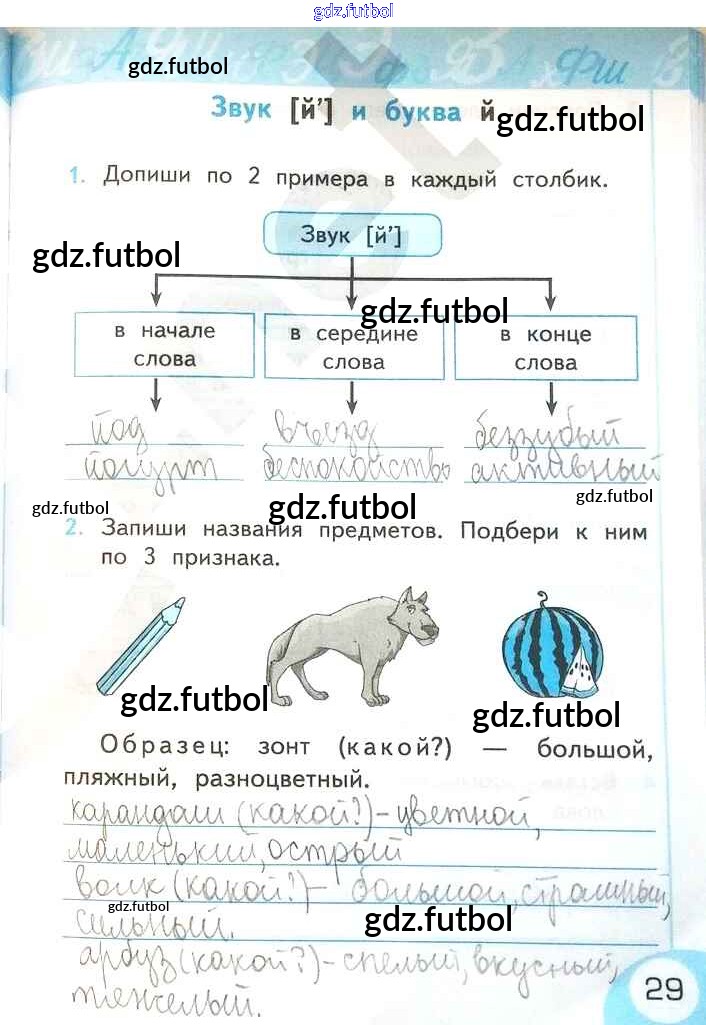Готовые домашние задания по Русскому языку за 2 класс Тихомирова Рабочая тетрадь УМК 2019 ФГОС - Часть 1. Страницы 29