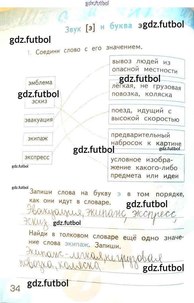 Готовые домашние задания по Русскому языку за 2 класс Тихомирова Рабочая тетрадь УМК 2019 ФГОС - Часть 1. Страницы 34