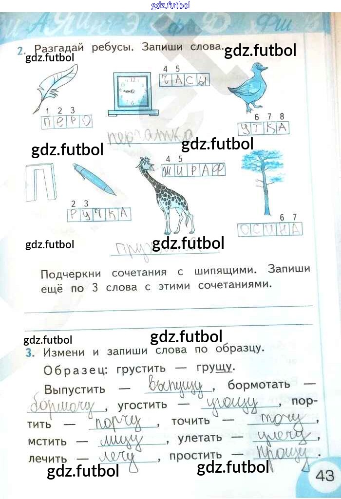 Готовые домашние задания по Русскому языку за 2 класс Тихомирова Рабочая тетрадь УМК 2019 ФГОС - Часть 1. Страницы 43