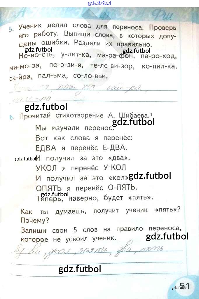 Готовые домашние задания по Русскому языку за 2 класс Тихомирова Рабочая тетрадь УМК 2019 ФГОС - Часть 1. Страницы 51