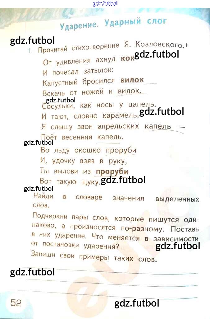 Готовые домашние задания по Русскому языку за 2 класс Тихомирова Рабочая тетрадь УМК 2019 ФГОС - Часть 1. Страницы 52