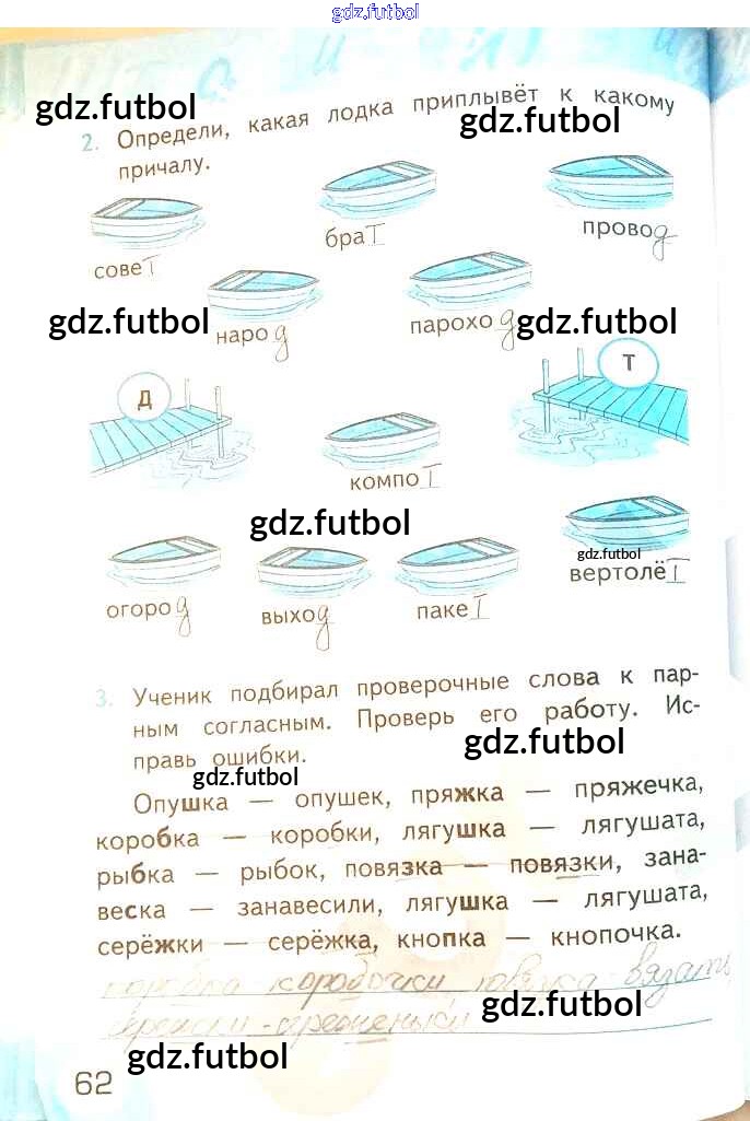 Готовые домашние задания по Русскому языку за 2 класс Тихомирова Рабочая тетрадь УМК 2019 ФГОС - Часть 1. Страницы 62