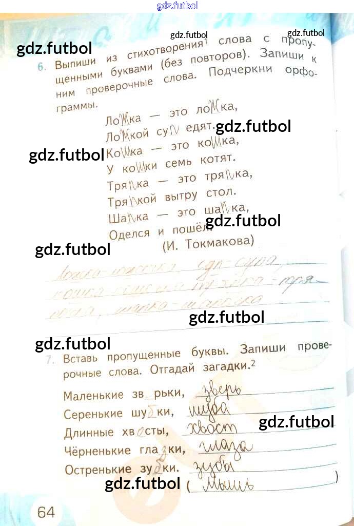 Готовые домашние задания по Русскому языку за 2 класс Тихомирова Рабочая тетрадь УМК 2019 ФГОС - Часть 1. Страницы 64