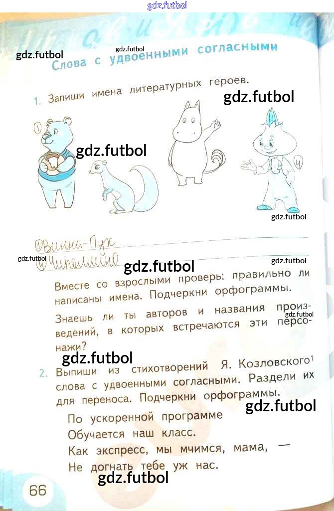 Готовые домашние задания по Русскому языку за 2 класс Тихомирова Рабочая тетрадь УМК 2019 ФГОС - Часть 1. Страницы 66