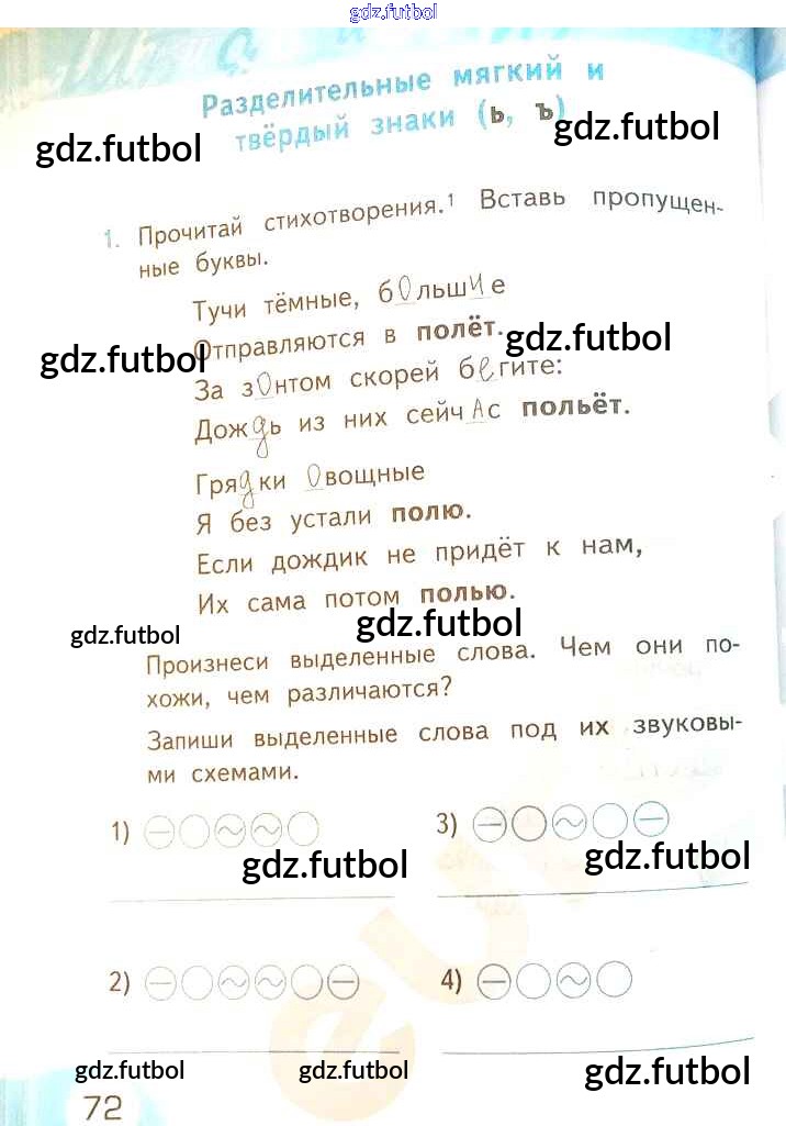 Готовые домашние задания по Русскому языку за 2 класс Тихомирова Рабочая тетрадь УМК 2019 ФГОС - Часть 1. Страницы 72