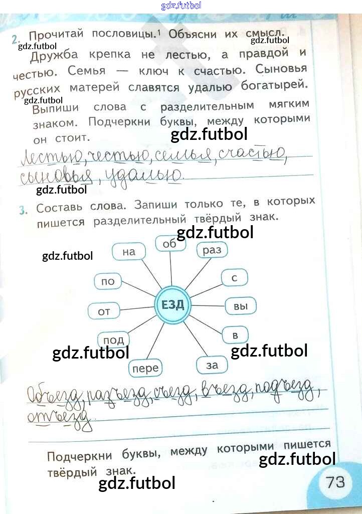 Готовые домашние задания по Русскому языку за 2 класс Тихомирова Рабочая тетрадь УМК 2019 ФГОС - Часть 1. Страницы 73