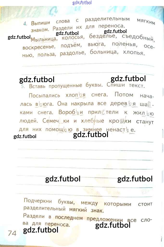 Готовые домашние задания по Русскому языку за 2 класс Тихомирова Рабочая тетрадь УМК 2019 ФГОС - Часть 1. Страницы 74