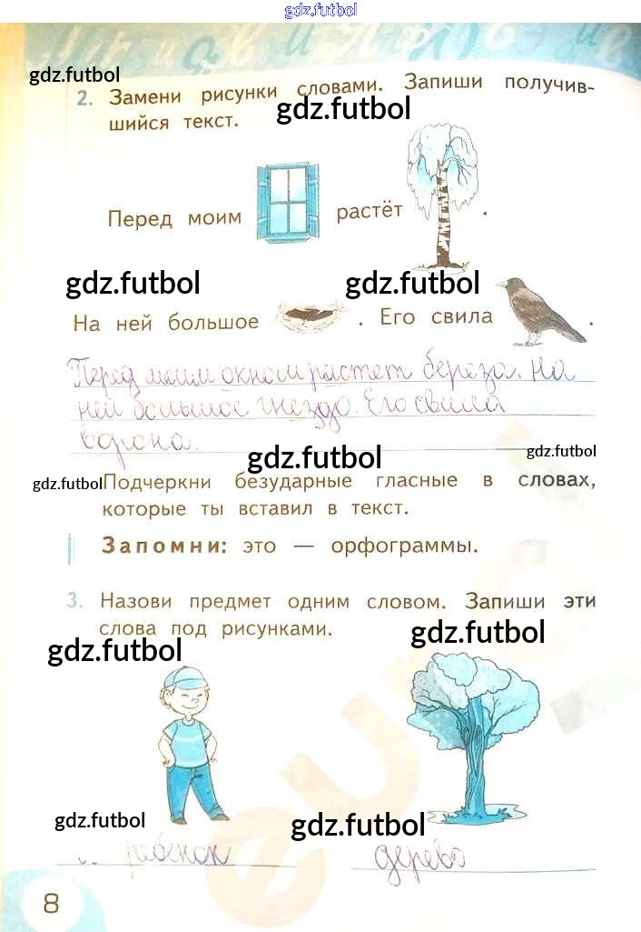 Готовые домашние задания по Русскому языку за 2 класс Тихомирова Рабочая тетрадь УМК 2019 ФГОС - Часть 1. Страницы 8