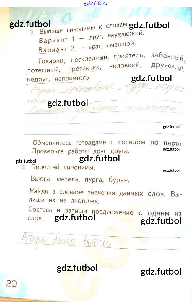 Готовые домашние задания по Русскому языку за 2 класс Тихомирова Рабочая тетрадь УМК 2019 ФГОС - Часть 2. Страницы 20