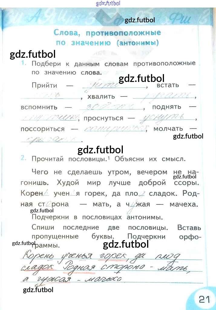 Готовые домашние задания по Русскому языку за 2 класс Тихомирова Рабочая тетрадь УМК 2019 ФГОС - Часть 2. Страницы 21