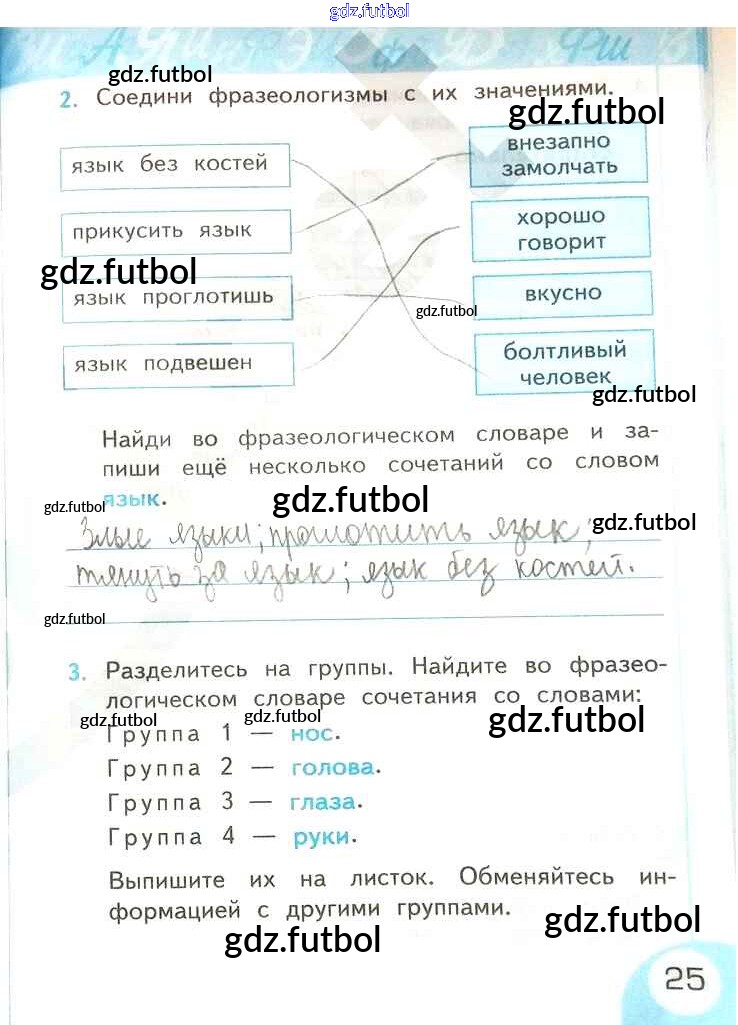 Готовые домашние задания по Русскому языку за 2 класс Тихомирова Рабочая тетрадь УМК 2019 ФГОС - Часть 2. Страницы 25
