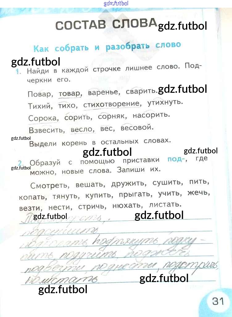 Готовые домашние задания по Русскому языку за 2 класс Тихомирова Рабочая тетрадь УМК 2019 ФГОС - Часть 2. Страницы 31