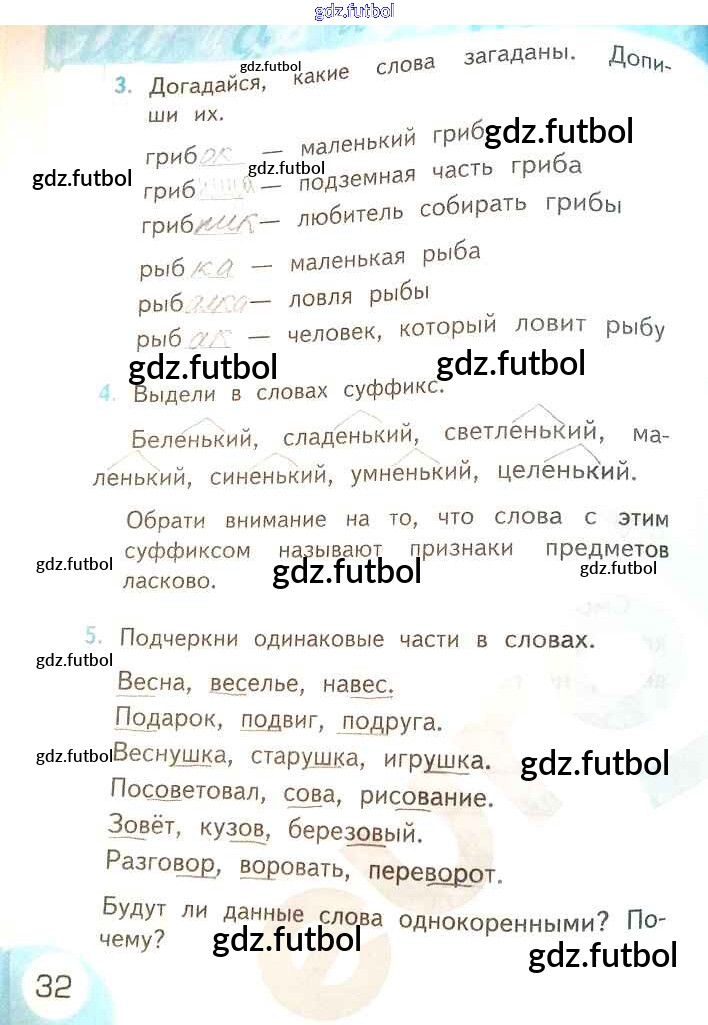 Готовые домашние задания по Русскому языку за 2 класс Тихомирова Рабочая тетрадь УМК 2019 ФГОС - Часть 2. Страницы 32