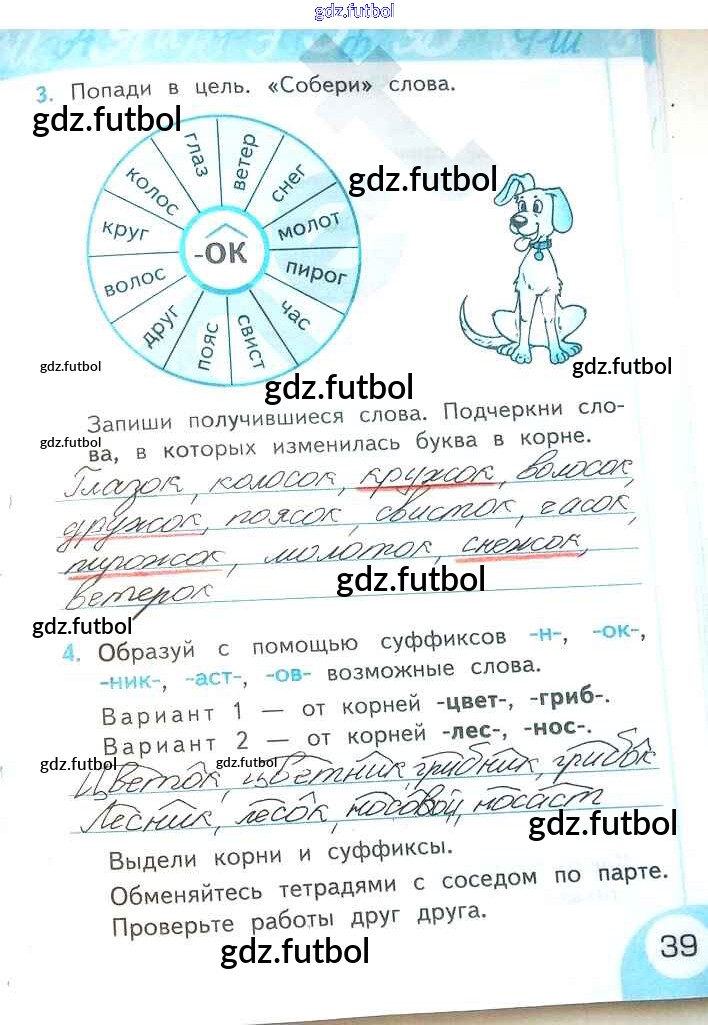 Готовые домашние задания по Русскому языку за 2 класс Тихомирова Рабочая тетрадь УМК 2019 ФГОС - Часть 2. Страницы 39