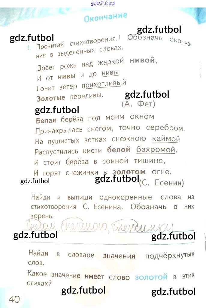 Готовые домашние задания по Русскому языку за 2 класс Тихомирова Рабочая тетрадь УМК 2019 ФГОС - Часть 2. Страницы 40