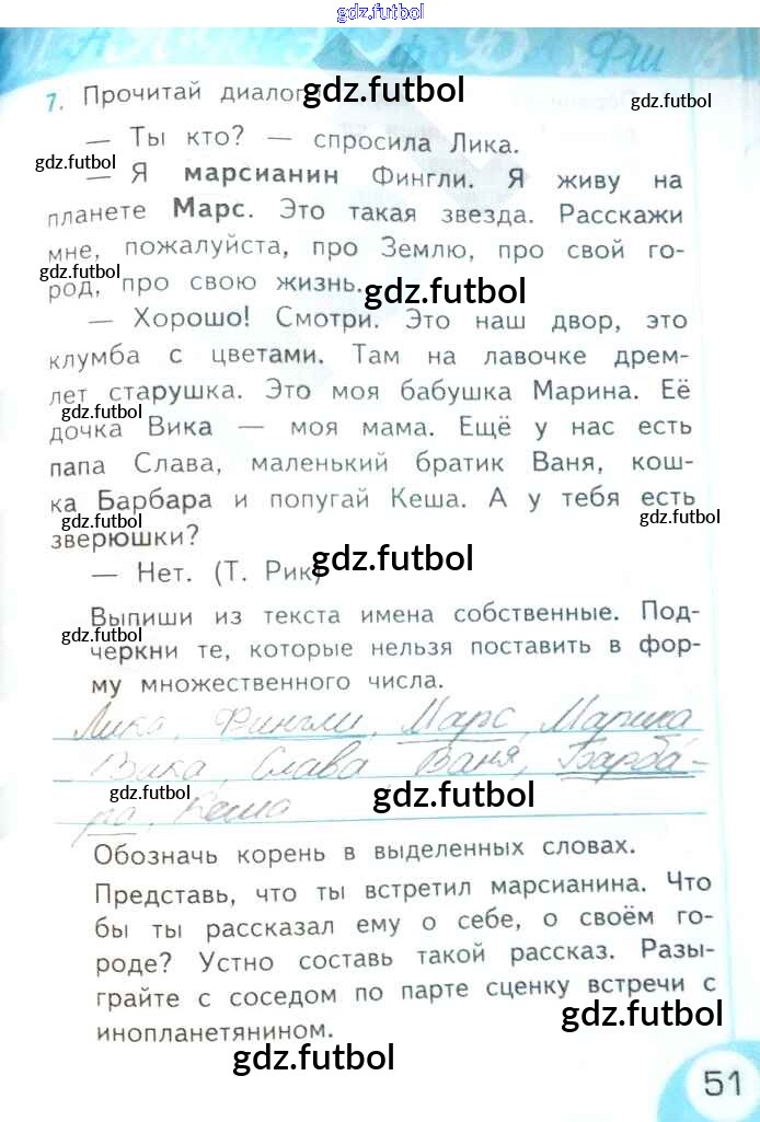 Готовые домашние задания по Русскому языку за 2 класс Тихомирова Рабочая тетрадь УМК 2019 ФГОС - Часть 2. Страницы 51