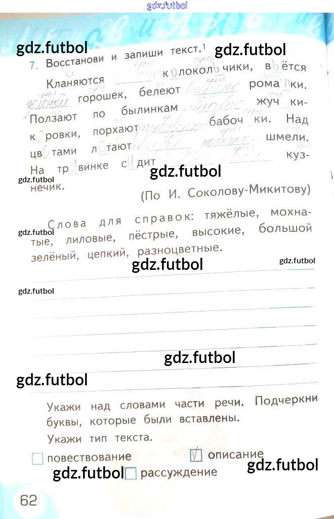 Готовые домашние задания по Русскому языку за 2 класс Тихомирова Рабочая тетрадь УМК 2019 ФГОС - Часть 2. Страницы 62