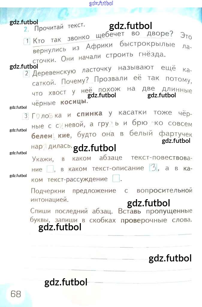 Готовые домашние задания по Русскому языку за 2 класс Тихомирова Рабочая тетрадь УМК 2019 ФГОС - Часть 2. Страницы 68