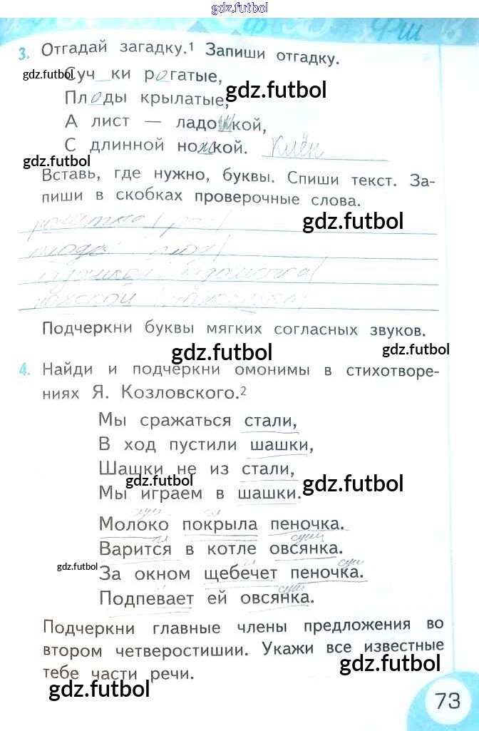 Готовые домашние задания по Русскому языку за 2 класс Тихомирова Рабочая тетрадь УМК 2019 ФГОС - Часть 2. Страницы 73