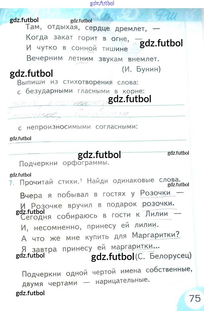 Готовые домашние задания по Русскому языку за 2 класс Тихомирова Рабочая тетрадь УМК 2019 ФГОС - Часть 2. Страницы 75