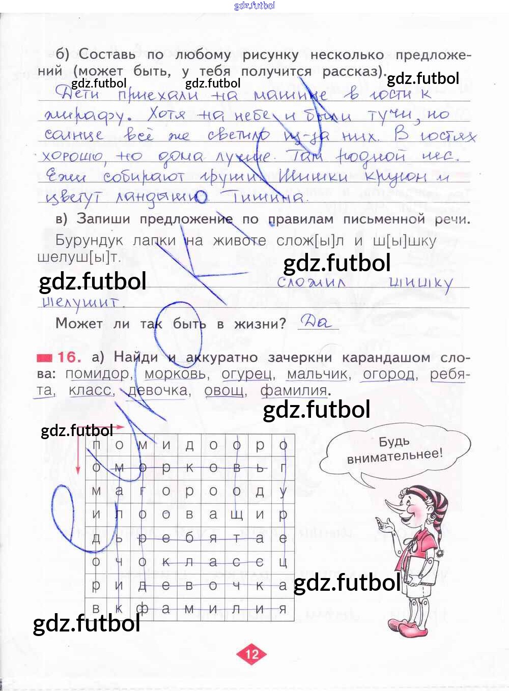 Готовые домашние задания по Русскому языку за 2 класс Яковлева Рабочая тетрадь 2015 ФГОС - Часть 1. Страницы 12