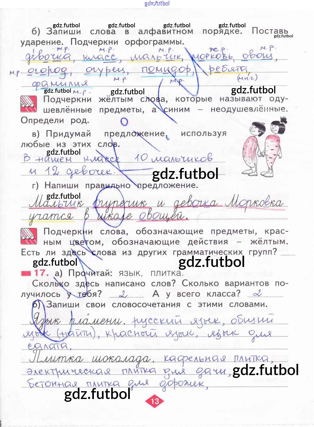 Готовые домашние задания по Русскому языку за 2 класс Яковлева Рабочая тетрадь 2015 ФГОС - Часть 1. Страницы 13