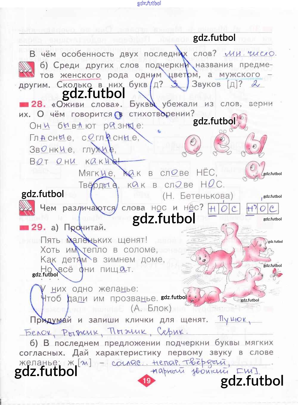 Готовые домашние задания по Русскому языку за 2 класс Яковлева Рабочая тетрадь 2015 ФГОС - Часть 1. Страницы 19