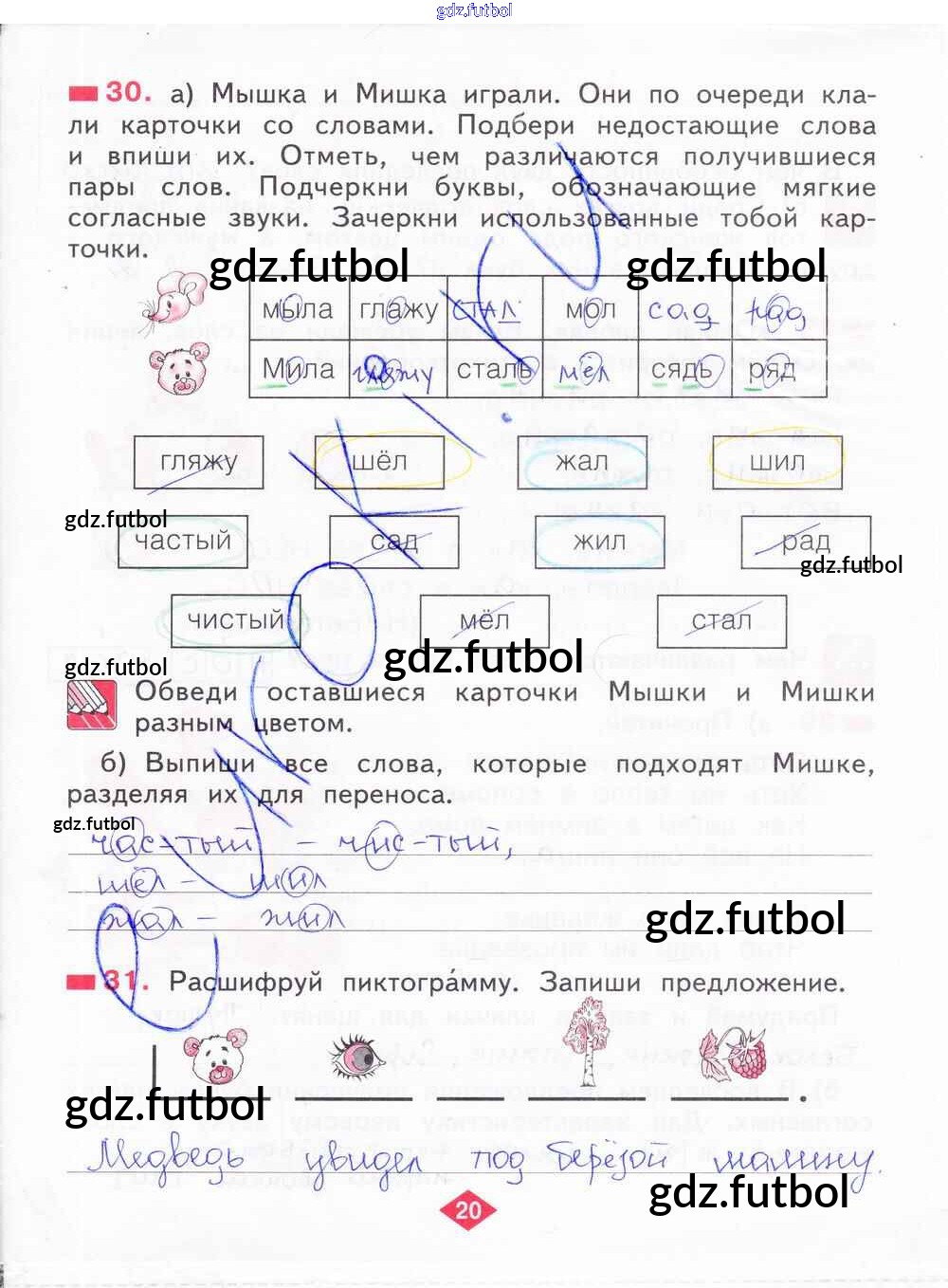 Готовые домашние задания по Русскому языку за 2 класс Яковлева Рабочая тетрадь 2015 ФГОС - Часть 1. Страницы 20